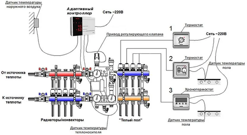 Условная схема электронного управления теплого полаИсточник st-montaj.ru