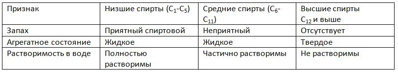 Все алкоголи имеют плотность ниже единицы, т.е. они плавают на поверхности воды. Спирты растворимы в большинстве органических растворителях.