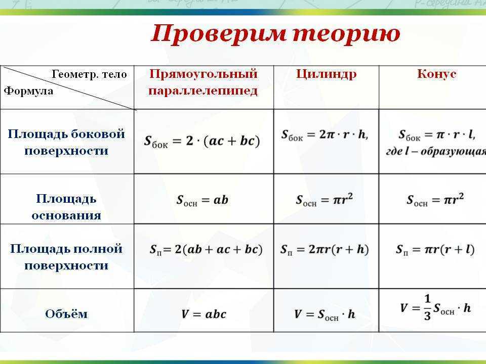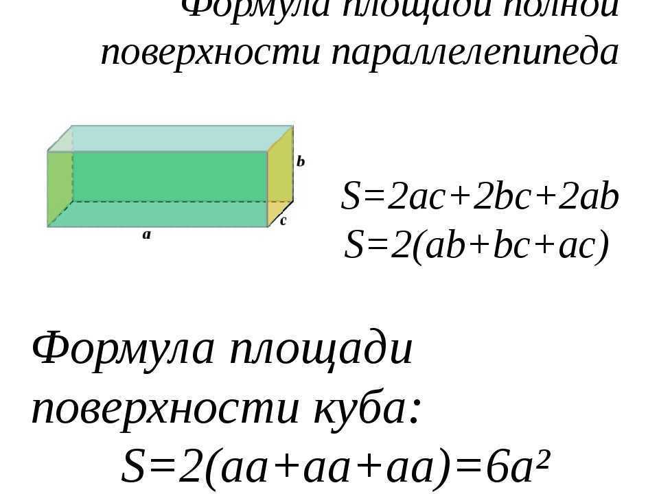 - Площадь поверхности – это сумма площадей всех граней тела.