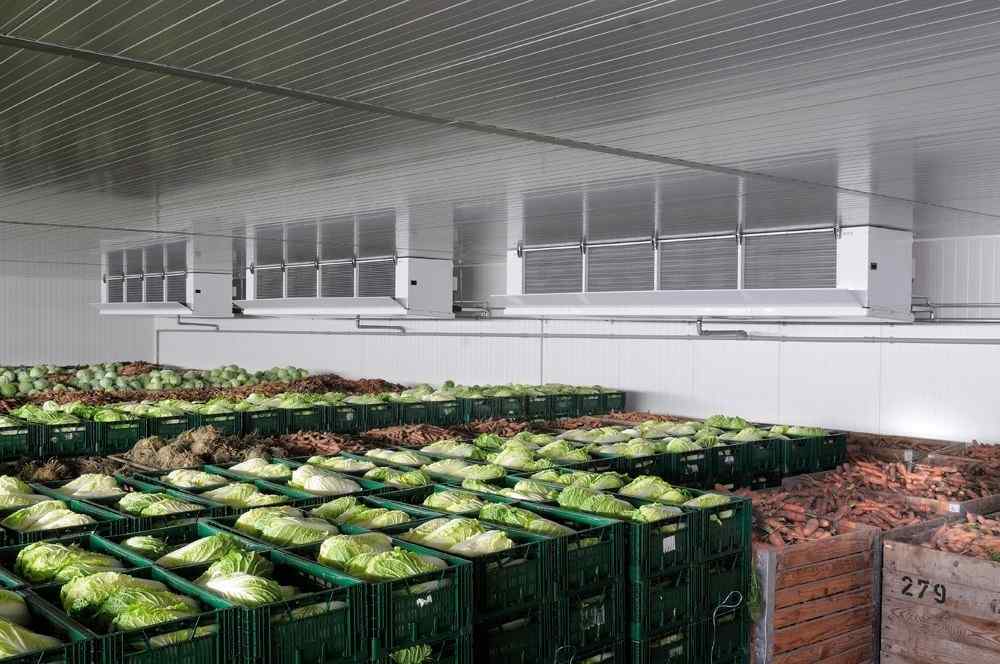 - В холодном складе необходима хорошая вентиляция и увлажнение для сохранения свежести овощей и предотвращения потери массы.
