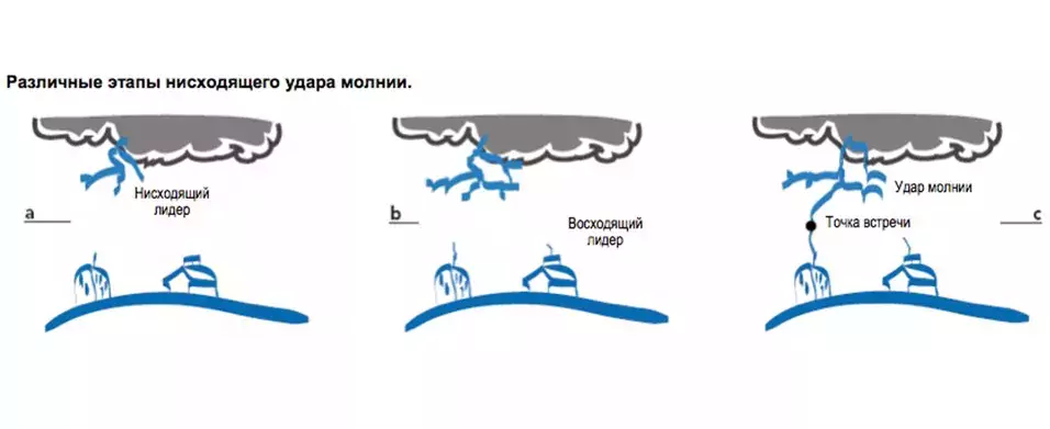 Здесь всё происходит по принципу центрального канала, который был описан ранее. На финальном этапе такая молния обязательно встречается с землёй или водой.