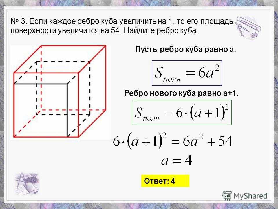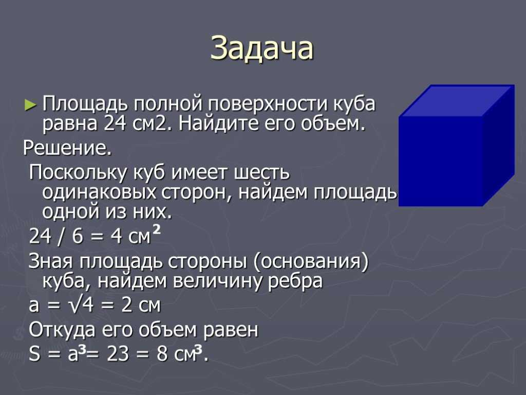 могут вызвать определенные трудности. Вычислить площадь поверхности куба