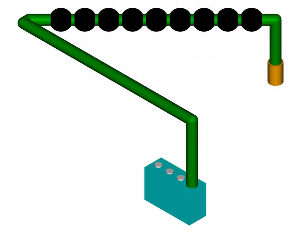 Рис. 5. Конфигурация трубы аспирационного извещателя. Точками обозначены отверстия в трубе