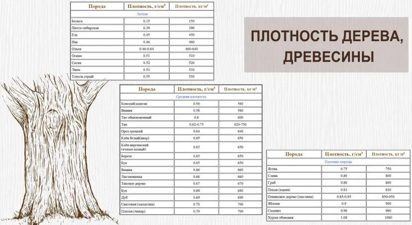 Как видно, некоторые виды деревьев могут иметь разную плотность, в зависимости от сорта.