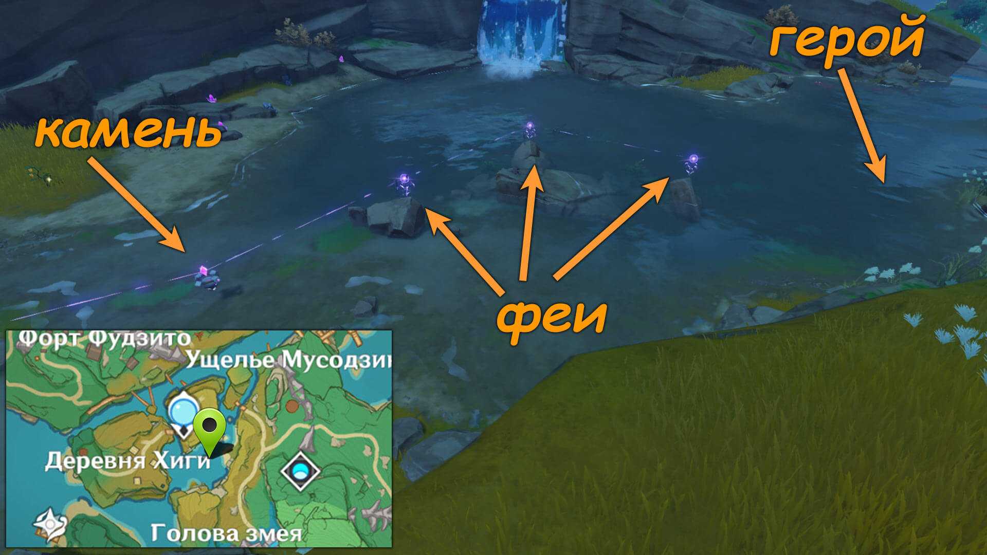 Как пройти головоломку с релейными камнями на озере Суигэцу в Genshin Impact