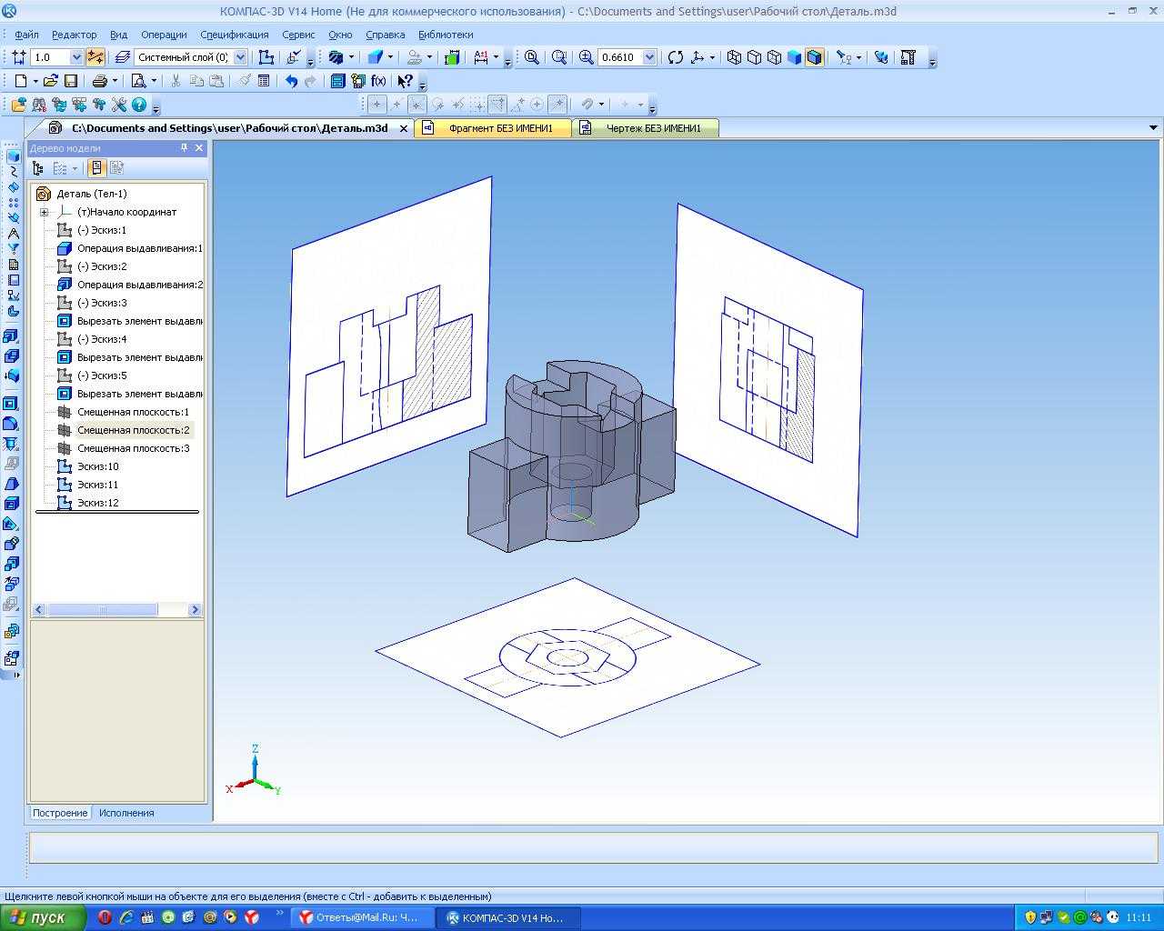 При выполнении аксонометрической проекции в программе Компас работа сводятся к построению проекций точек и их соединению в определённой последовательности.