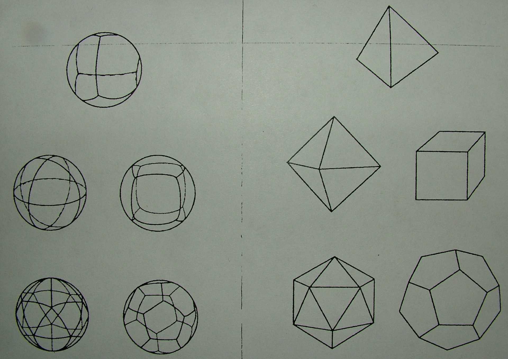 Чтобы из правильного многогранника получить разбиение сферы, нужно описать вокруг многогранника сферу. Вершины многогранника окажутся на поверхности сферы, соединив эти точки отрезками на сфере (дугами), получим разбиение двумерной сферы на правильные сферические многоугольники. Для примера сделана видео демонстрация как икосаэдр соответствует разбиению сферы на сферические треугольники и обратно, как разбиение сферы на сферические треугольники, сходящиеся по пять штук в вершине, соответствует икосаэдру.