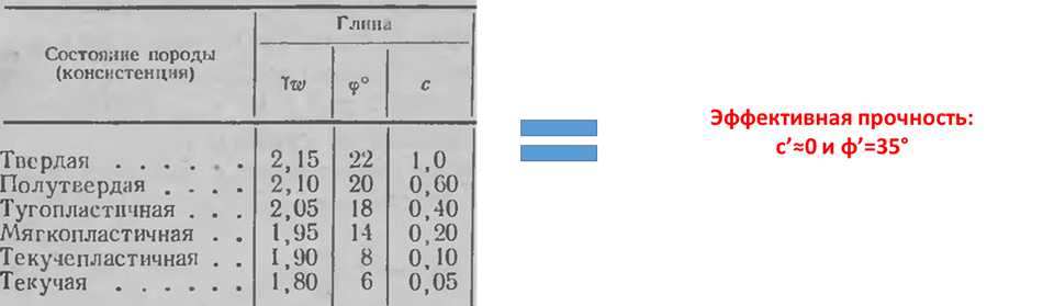 Например, глину с конкретными характерными влажностями можно моделировать этими значениями эффективной прочности:
