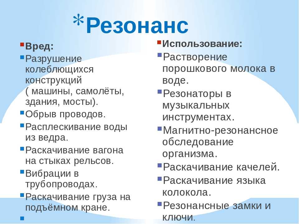 В физике существует большое количество видов резонанса. Все они чем-то схожи и чем-то различны, а именно – своими признаками и природой появления. Среди них можно выделить:
