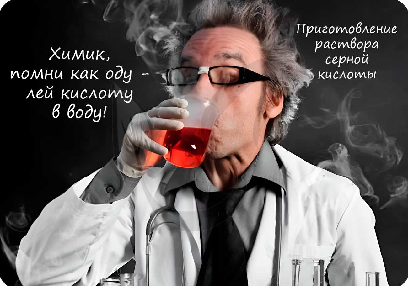 При разбавлении концентрированной серной кислоты следует медленно и осторожно приливать кислоту в воду, но не наоборот. При разбавлении кислоты выделяется большое количество тепла, поэтому при при-ливании воды к кислоте может произойти разбрызгивание кислоты