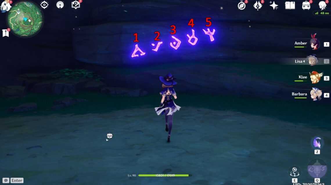 Изображения выше показывают, куда именно вам придется идти. Отправляйтесь в нужное место и взаимодействуйте со статуей птицы, чтобы призвать Электро фею. Следуйте за ней, чтобы попасть на уступ под утесом. Там будет ждать очередная статуя птицы, возле которой нужно использовать перо. Так вы сможете узнать правильную последовательность знаков для решения головоломки с камнями.