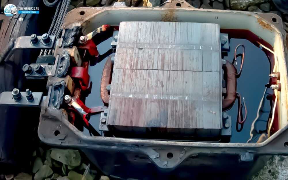 Основная обмотка дроссель-трансформатора выполнена из медной шины большого сечения и имеет малое сопротивление постоянному тяговому току (от 0,0008 до 0,0024 Ом).
