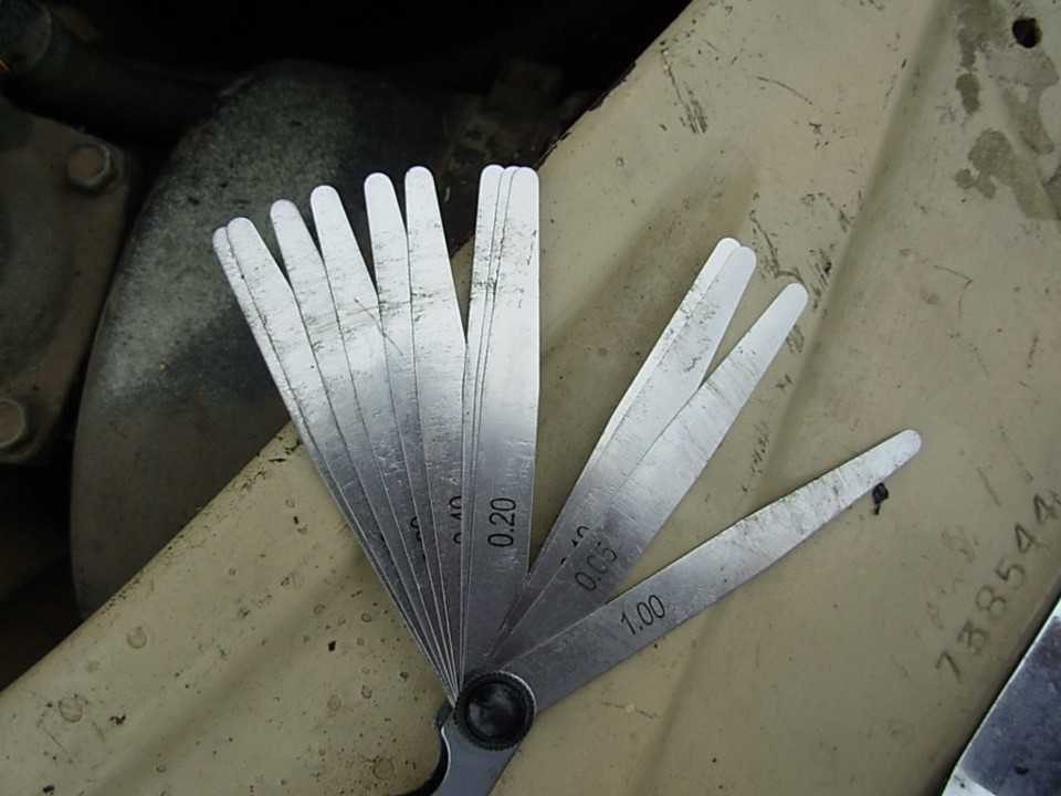 Щуп должен плотно сидеть между ними, так, чтобы щупом можно было двигать, но при движении на нем не должно оставаться царапин. Затягиваем контргайку, удерживая ключем или плоскогубцами болт настройки. После затяжки еще раз контролируем зазор.