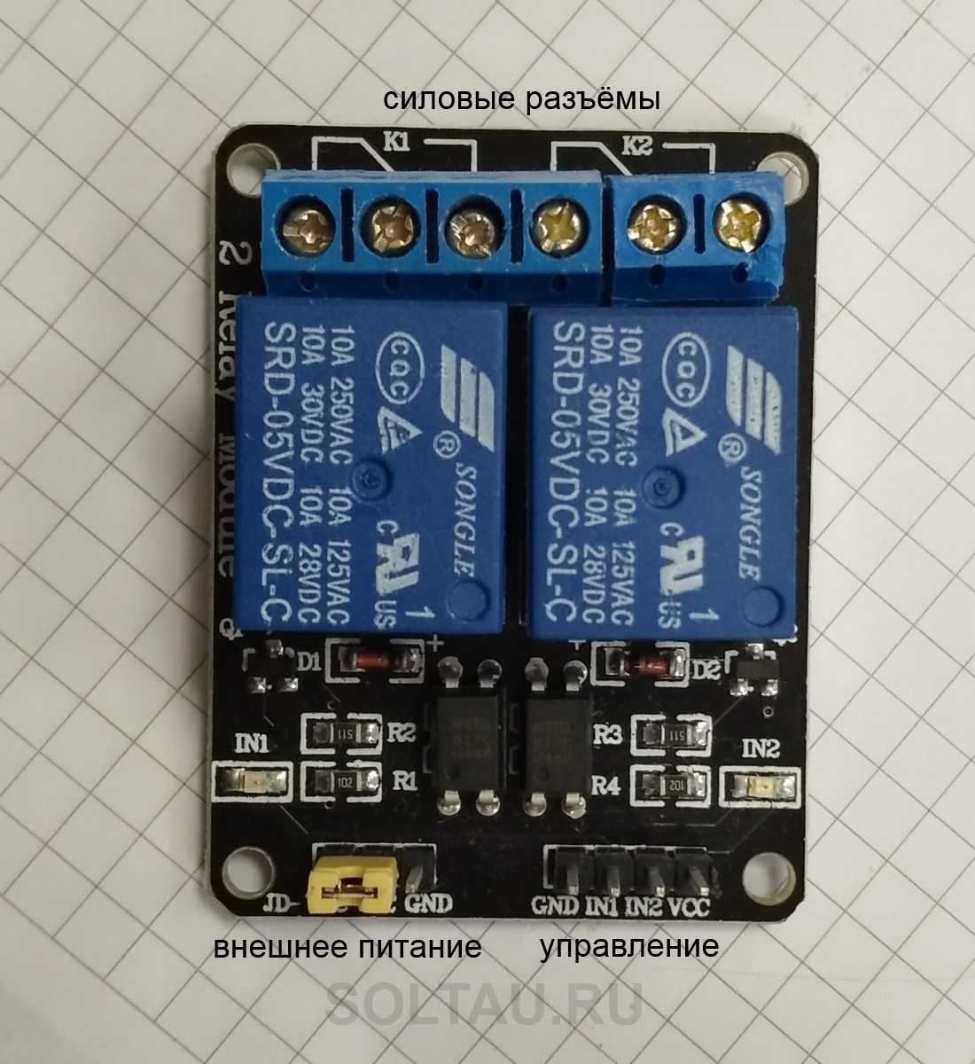 Будем использовать модуль с двумя одинаковыми реле типа SRD-05VDC-SL-C или аналогичный .