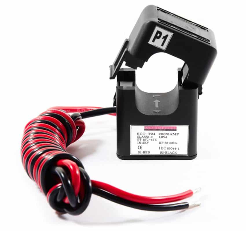 Трансформатор тока имеет две обмотки, первичная обмотка выполнена в виде мощной шины, продетой через середину трансформатора, она подключается в разрыв силовых проводов питания электропотребителей. Вторичная обмотка имеет большое количество витков тонкого провода, эта обмотка подключается к электросчетчику.