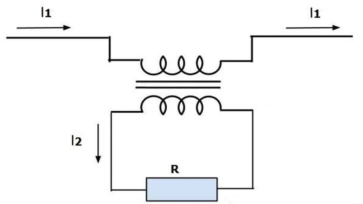 Иногда в роли первичной обмотки выступает проводник электрической цепи. Для этого конструкция сердечника позволяет применить шарнирное соединение частей трансформатора для обхвата провода (см. рис. 6).