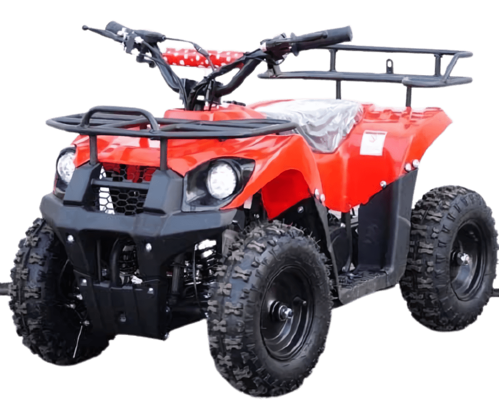 Фары головного света ярко освещают дорогу, устойчивы к вибрации, пыли и грязи. Это повышает безопасность передвижения по бездорожью. Рама выполнена из стали, имеет жёсткую конструкцию и устойчива к деформационным нагрузкам. У квадроцикла компактная архитектура, лёгкий вес – 50 кг. Его легко перевозить на дачу.