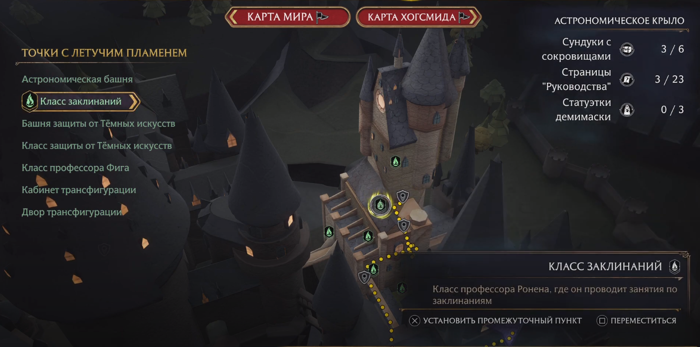 Если все перечисленные условия выполнены, вы можете начать выполнение задания. Для этого найдите Софронию Франклин, студентку Когтеврана. Она стоит перед картиной рядом с точкой с летучим пламенем «Класс заклинаний» в Астрономическом крыле.