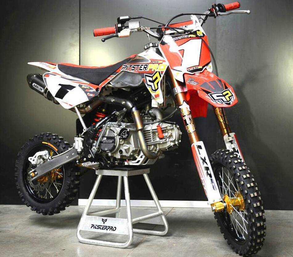 Питбайк – это мини-мотоцикл типа кросс/эндуро с размерностью колес до 17/14 дюймов (перед/зад), небольших размеров, легкий, оснащается двигателем от 50 до 190 куб. см. Есть детские питбайк рассчитанные на возраст 5 лет и больше.