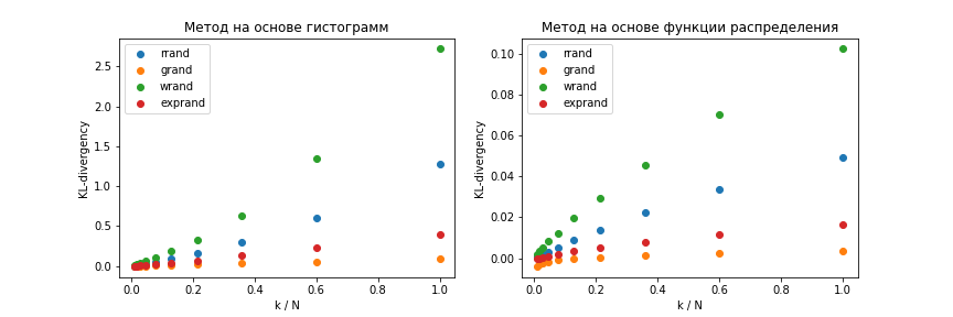 Для сравнения точности представленных методов будем использовать расстояние Кульбака-Лейблера от априорной функции плотности распределения до получаемой оценки :