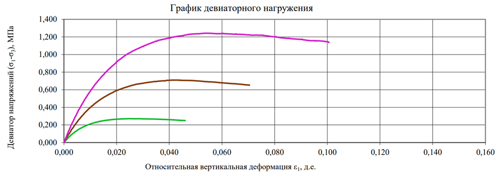 В качестве примера возьмём лабораторные графики трёхосного испытания.